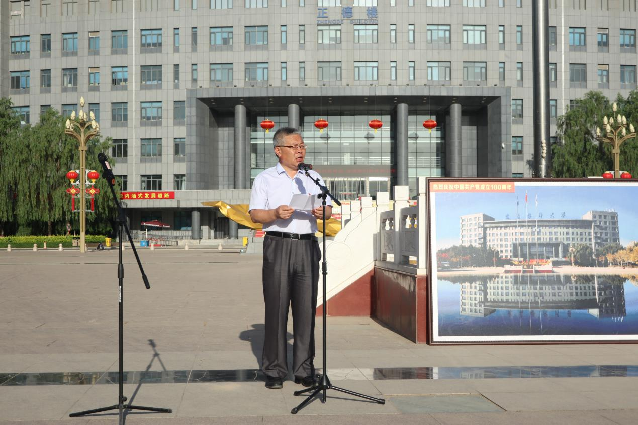 为热烈庆祝中国共产党成立100周年,7月1日上午7:20学校在雁湖校区、双怡校区同时举行了“以青春之我 向党深情告白”主题升国旗仪式,新疆驻宁夏工作组党委书记、教育协调组组长李有亮,学校党委副书记朱建华出席本次仪式,全体学工人员及全体在校生共五千余人参加。