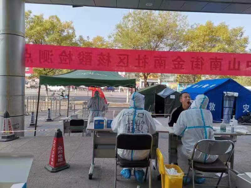 来到我们支援的社区——中山南街金南社区,匆匆吃了晚饭,就穿上防护服,协助医生进行核酸采集。秋天银川的夜晚很冷,但我们想要保护城市的感情是滚烫的。