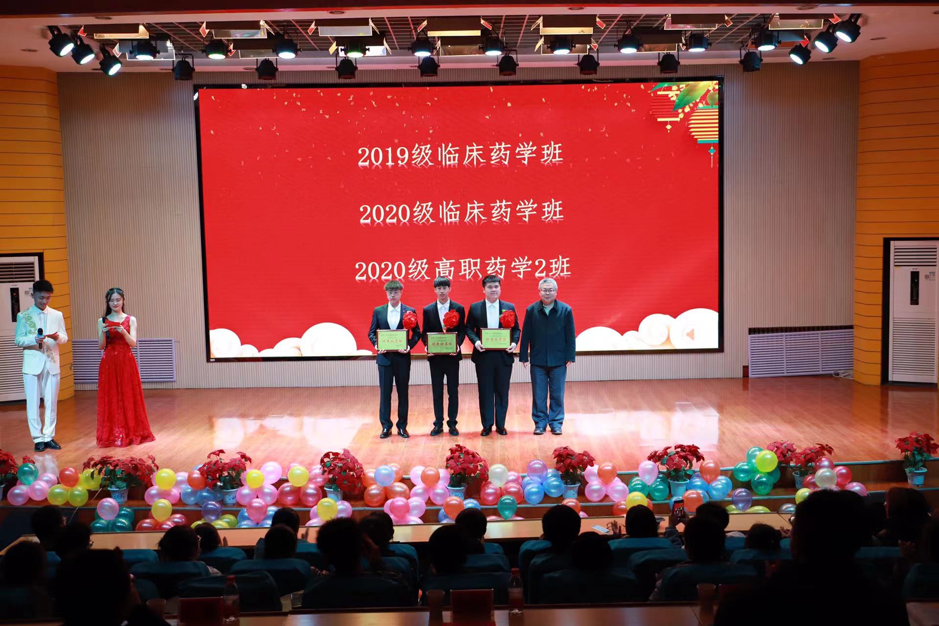 学院院长余建强宣读了表彰决定,朱建华、丁聃及学生处、团委负责人和学院领导分别为2019级临床药学班等3个优秀班集体,方瑞洁等156名优秀学生颁发“三好学生”“优秀学生干部”“优秀青年志愿者”“学习进步奖”等证书。