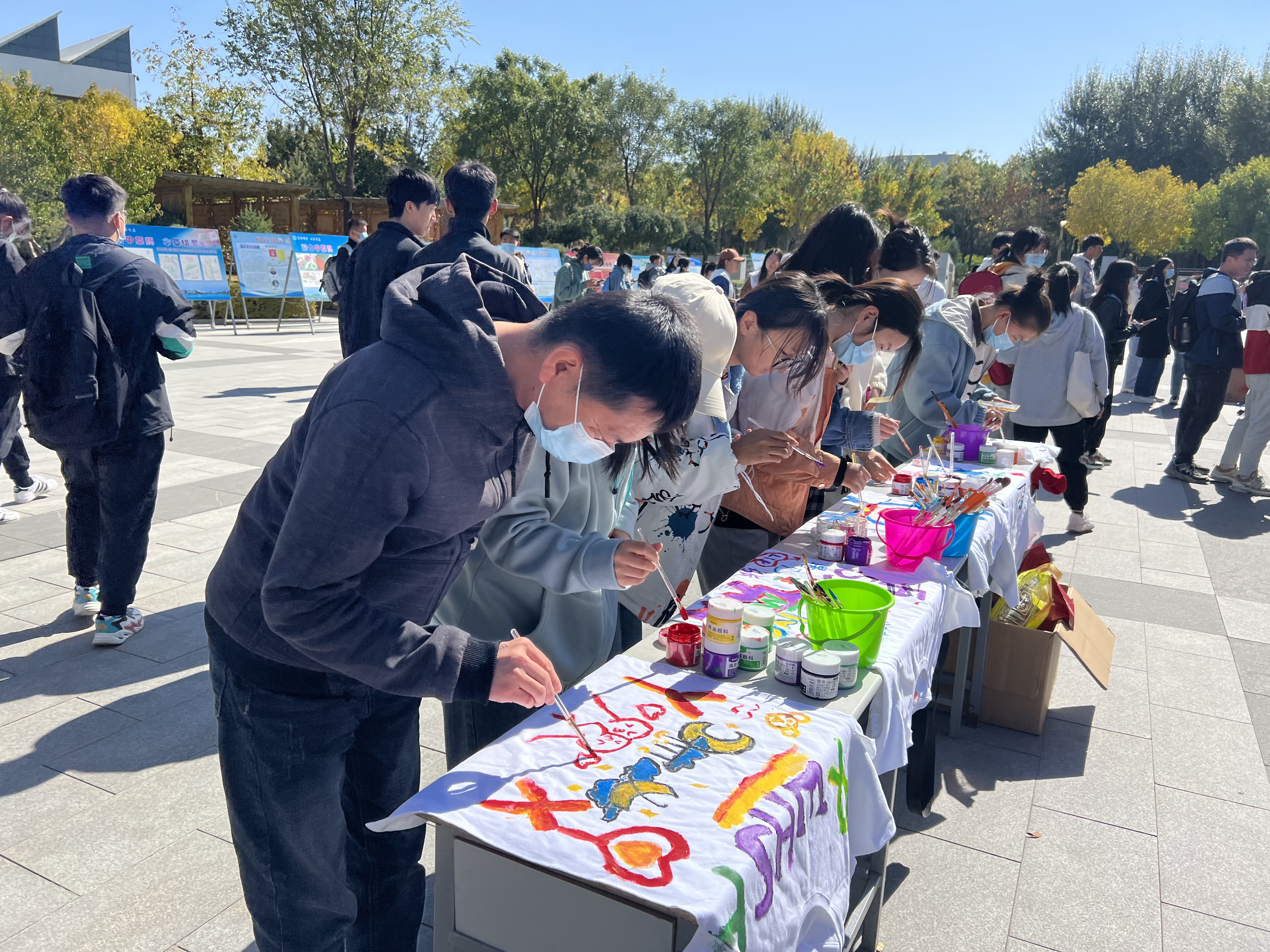 本次活动以“营造良好环境 共筑心理健康”为主题,共开展了“爱你在心口难开”、“情绪大侦探(你划我猜)”、“扎气球”、现场彩绘T恤以及为“你最喜爱的‘T-ART’心理彩绘作品”投票等11项活动,旨在帮助学生及时释放压力、舒缓心情,培育理性平和健康心态,凝聚青春正能量,为做好校园疫情防控工作贡献力量。
