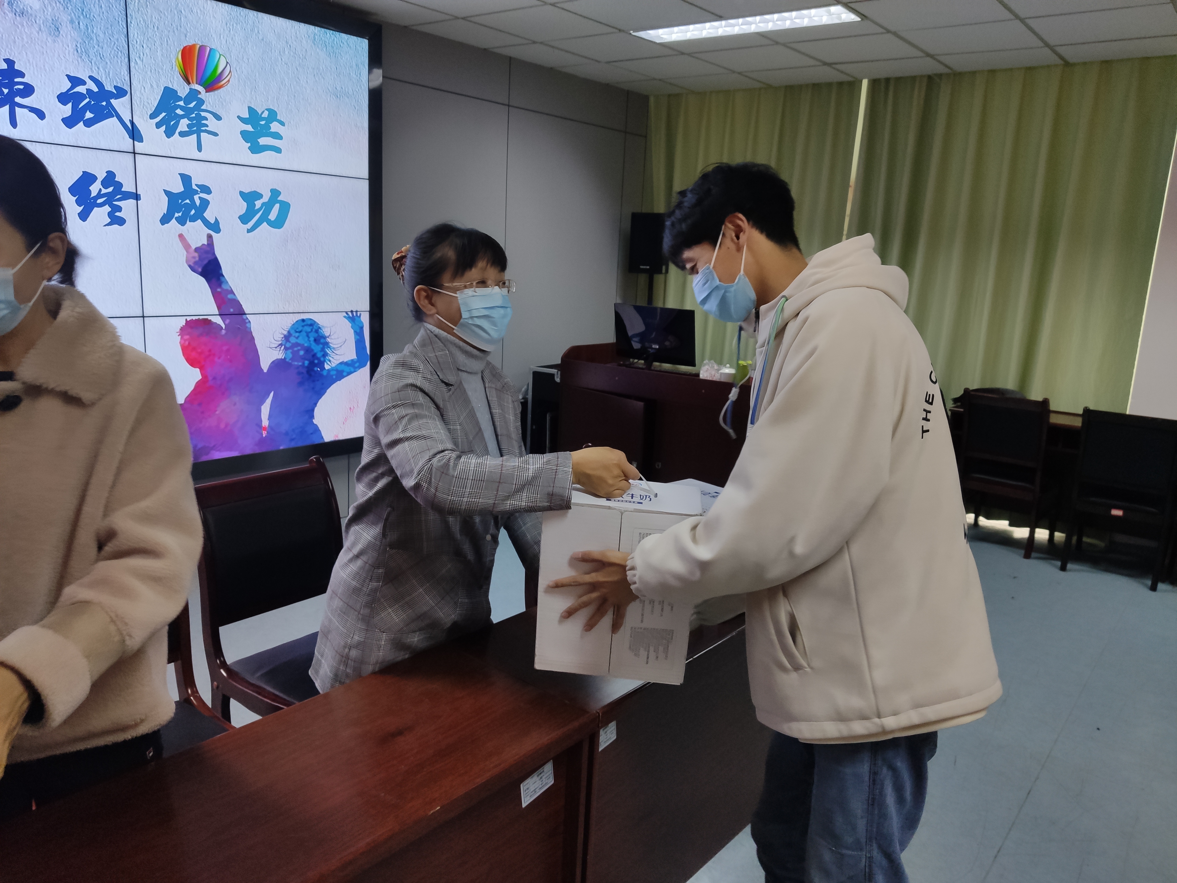 学院刘娟院长和张艳丽副书记代表全院老师,向即将参加2023年硕士研究生考试的45名同学,表达了全院老师的祝福和祝愿,鼓励同学们坚定信心信念、披荆斩棘逐梦,以“天道酬勤”实现未来的目标,同时嘱咐同学们留校期间注意各类安全,坚持健康打卡,保证顺利完成考试、安全返乡。全体住校领导老师还为所有同学发放了爱心慰问品。