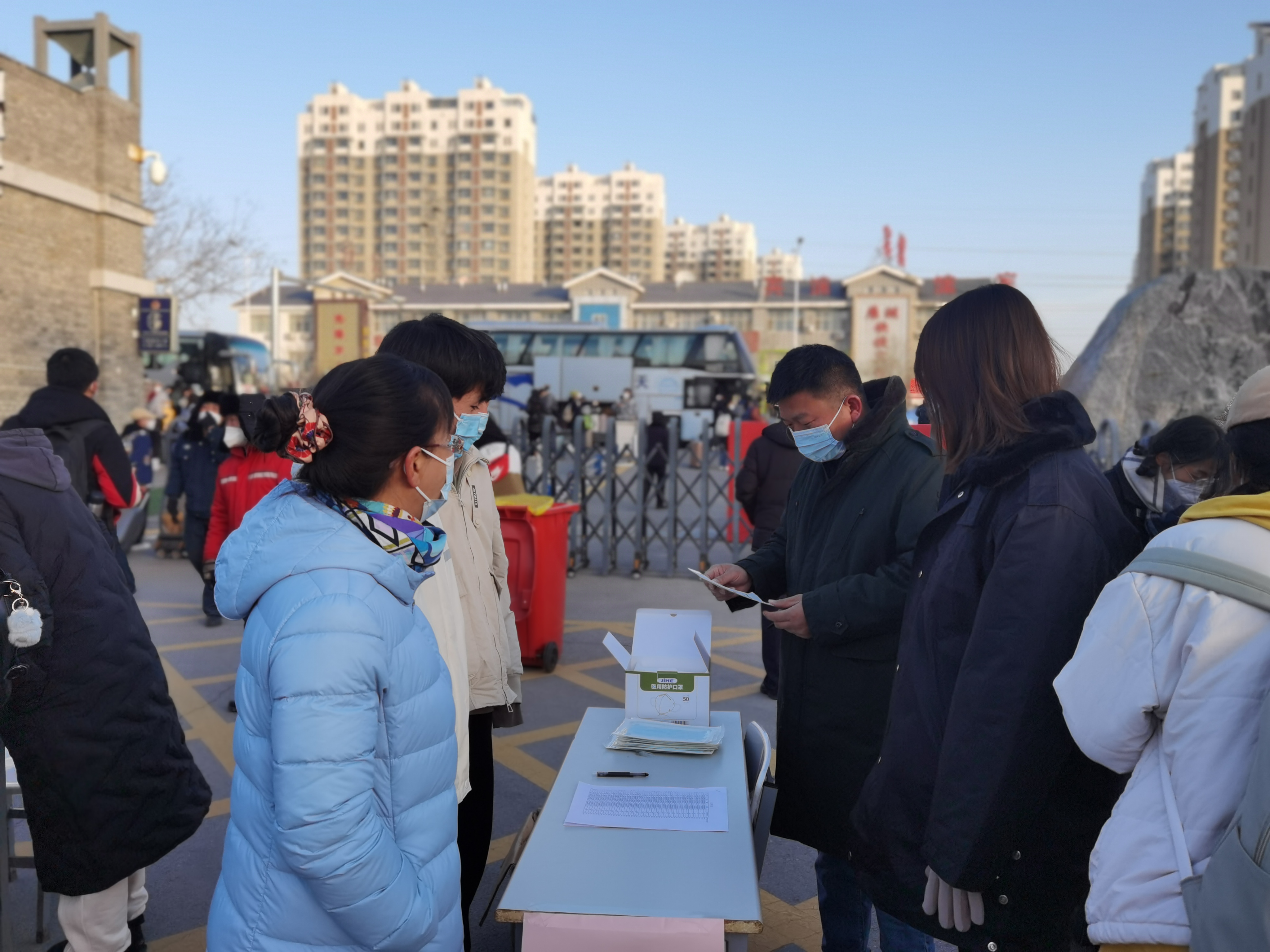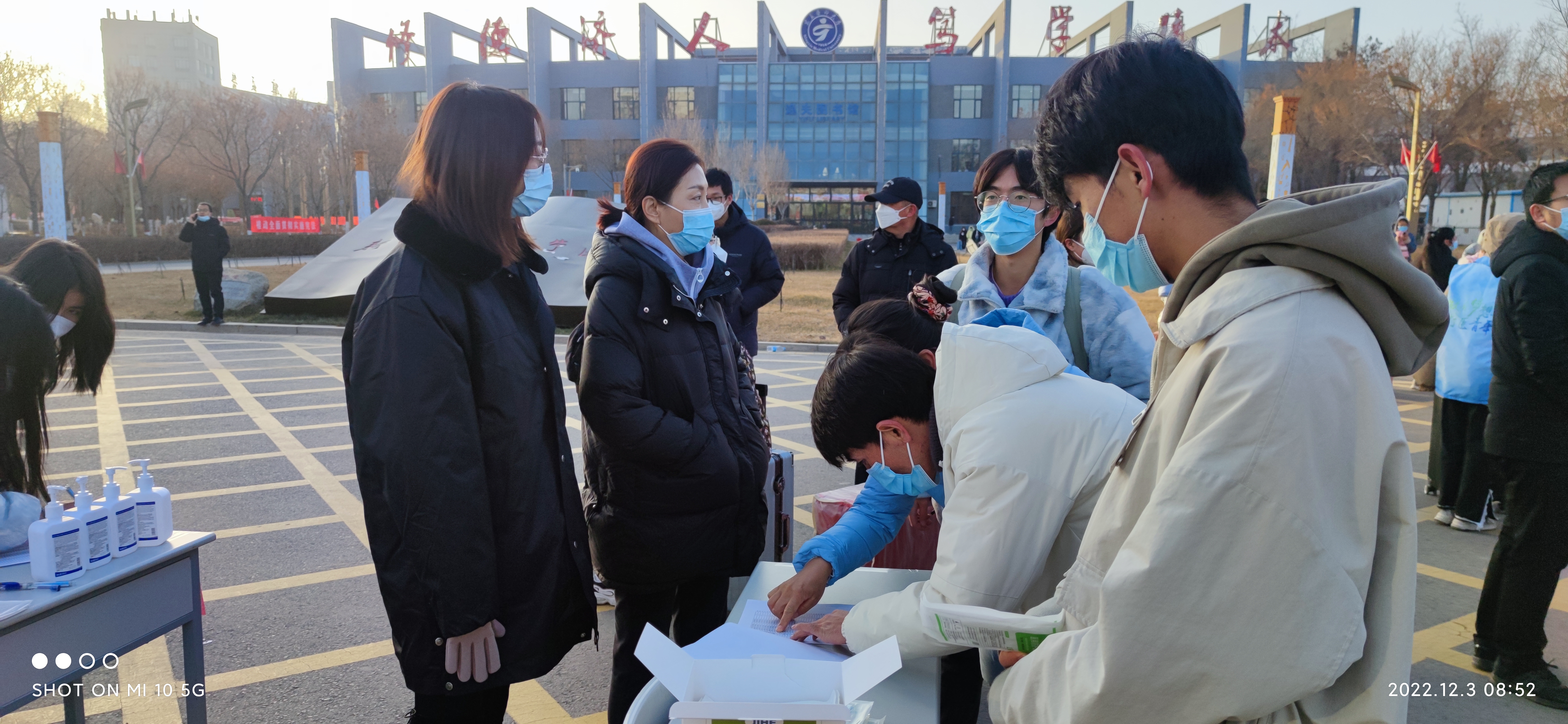 自12月2日学生陆续分批离校期间,学院驻校领导老师还与志愿者们一同在学校北门送别离校学生,叮嘱同学们更换口罩,做好路途防护,确保安全返乡。