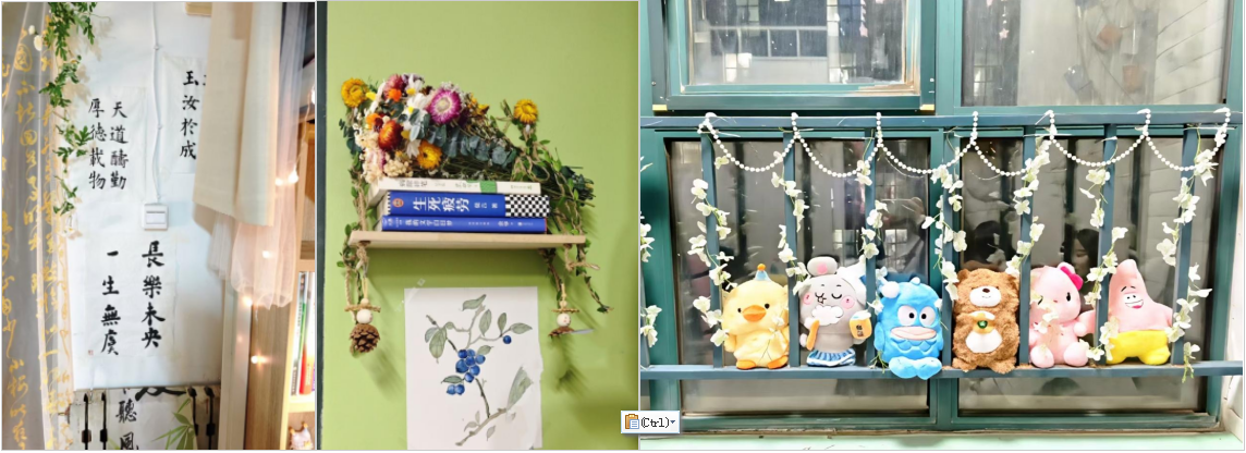 本次文化节围绕“有爱、整洁、创意、美观”的主题,鼓励同学们以宿舍为家,用心装点属于彼此的青春天地。有的宿舍以绿植和手作装点,打造简约治愈风,让生活空间充满自然气息;有的将热爱融入设计,用海报、标语和照片墙展现个性与态度;更有同学以动漫、花艺、暖光灯为主题元素,让零食与玩偶也成了空间中不可或缺的温暖点缀。每一处细节,都是舍友之间默契与情感的见证;每一次共同布置,都让这方寸之地,真正成为心灵栖息的港湾。