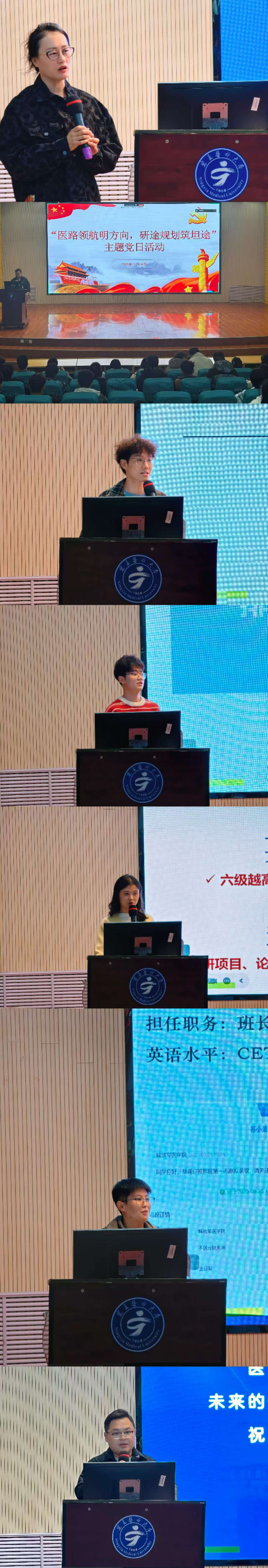 核心分享环节,推免至北京协和医学院的陈浩然、首都医科大学的张永维、天津医科大学的戈文轩、解放军医学院的苏小荣四位党员同志,立足临床医学、医学影像学、眼视光医学的专业特性,围绕学业规划制定、阶段性目标达成、科研早期介入、科创竞赛参与、高校夏令营筹备、推免条件解读及面试侧重点等关键内容,倾囊分享实操经验与成长感悟。