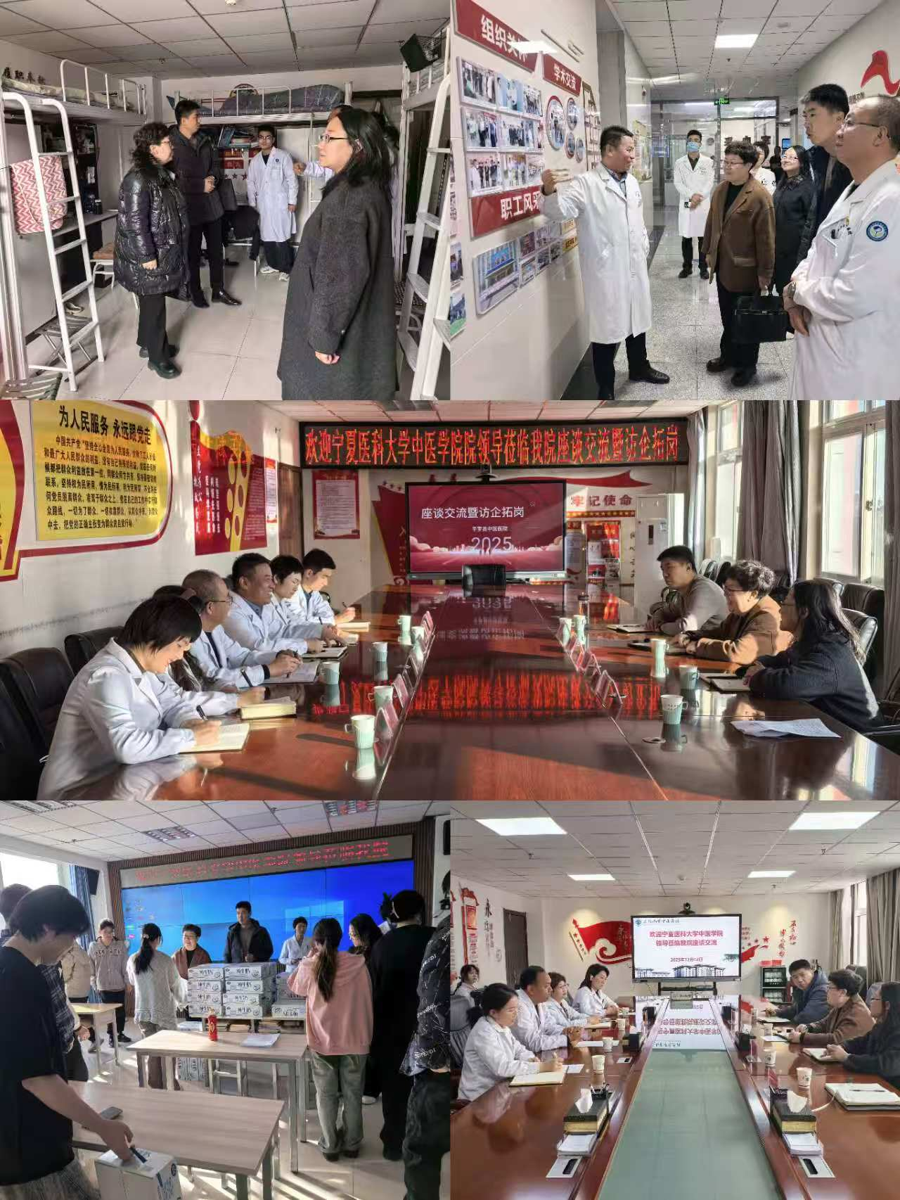 12月2日,中医学院党委书记李颖带队,党委副书记马昕、王东博及辅导员一行,前往石嘴山市中医医院、平罗县中医医院开展实习生慰问与访企拓岗专项活动。