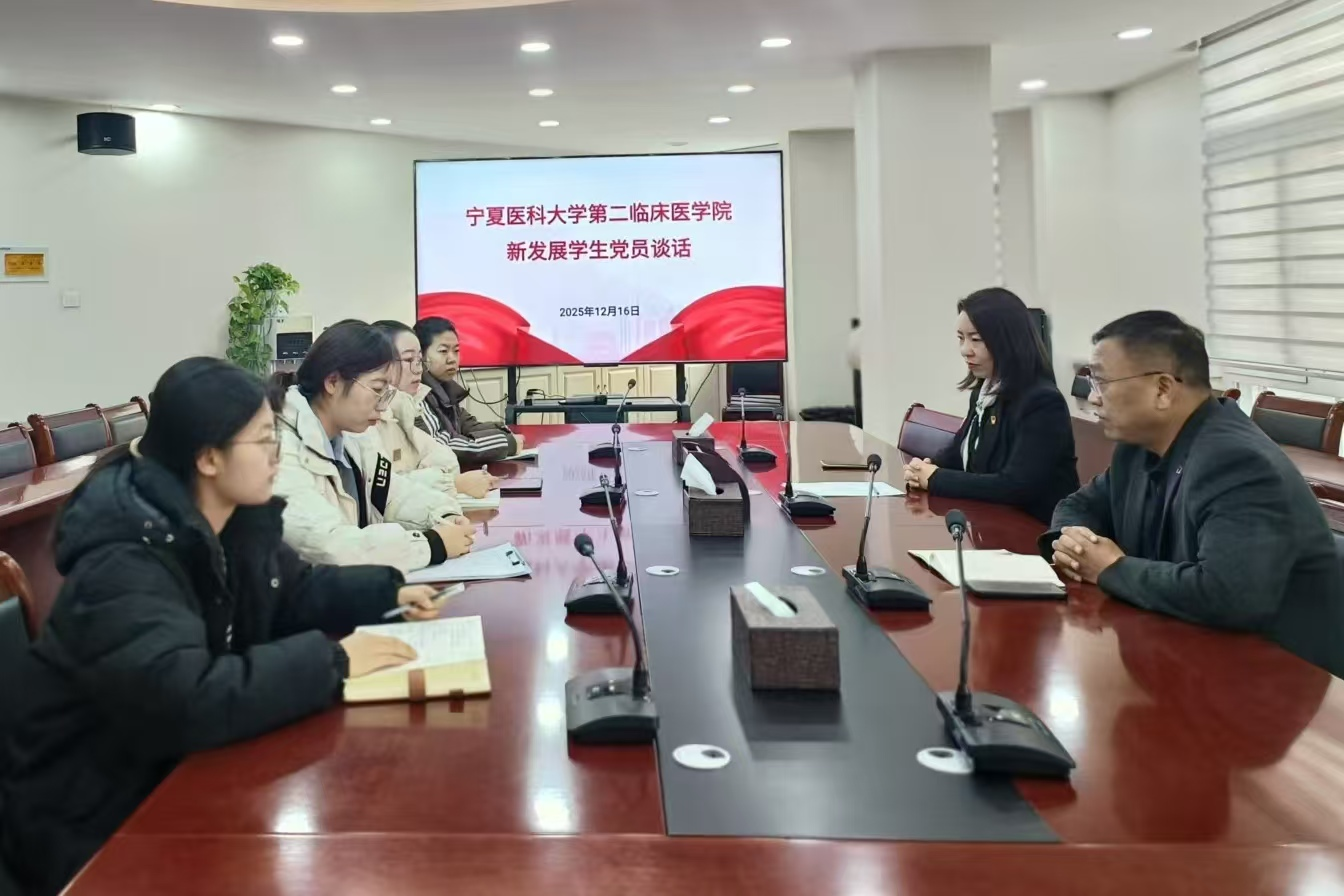 2025年12月16日上午,在第二临床学院召开新发展党员学生谈话会议。二临床党委副书记辛林,组织员景怡参加会议。针对新发展党员学生,从筑牢信仰之基做赤诚忠贞的表率;淬炼党性做遵规守纪的标杆;磨砺担当之能做勤学笃行的先锋等方面,分别进行了党员谈话。新发展学生党员也表示,要以党员标准严格要求自己,在学习、工作、生活中做表率,勇担当。