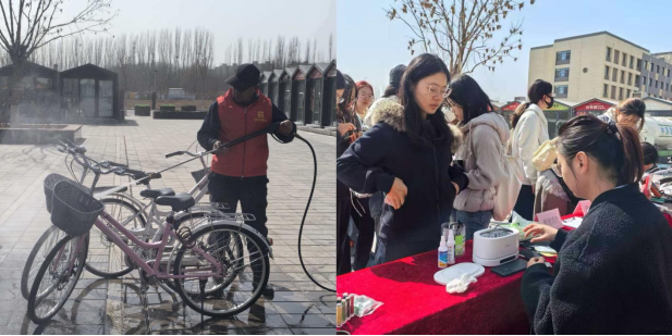 本次活动以强化党员宗旨意识、服务意识、责任意识为核心,将雷锋精神与校园后勤保障、日常服务工作深度结合。志愿服务现场热闹非凡,各服务点位分工明确、有序开展,精准对接师生校园生活中的实际需求,打造“一站式”学生社区便民服务。在“爱心维修”服务区,志愿者们为师生提供台灯、风扇等小型家电检测维修,桌椅、床架等家具加固,以及宿舍插座、灯具、漏水等水电安全简易排查服务,用专业技能解决师生生活中的小麻烦;洗护与衣物护理服务区,免费熨烫、缝补衣物纽扣被褥的服务贴心又实用,让师生感受到暖心关怀;眼镜清洗服务区前,志愿者们细致为学生清洗眼镜,用点滴行动传递温暖。