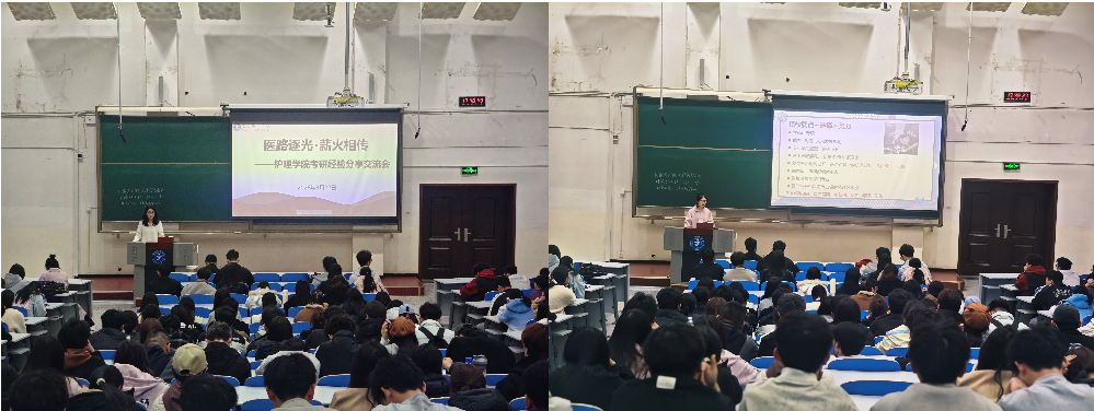 3月22日,护理学院召开“医路逐光·薪火相传”主题考研经验分享交流会,邀请学院“追光”宣讲团成员李治花、刘思容同学为学弟学妹们开展考研专题指导,2023级本科护理、2025级护理专升本班182名同学和辅导员参加。