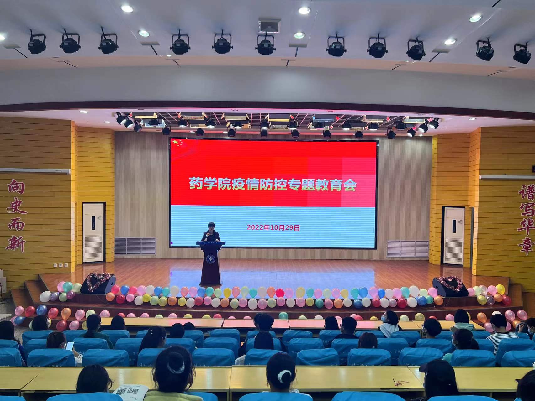 10月29日至30日,药学院党委书记孙冬梅采取线下和线上结合的方式,面向全院全体学生分层次、按年级开展6场疫情防控专题教育。