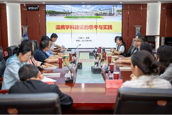 本次会议邀请到了广州中医药大学、南京中医药大学、成都中医药大学、陕西中医药大学共6位专家学者,围绕温病学学科发展前沿和最新成果、温病学理论与临床融合创新等方面,开展学术交流,剖析学科未来发展趋势。期间专家们听取了学校温病学科建设情况的汇报,共同就学科发展趋势、学科成果凝练、整合优势资源等方面建言献策,把脉问诊。