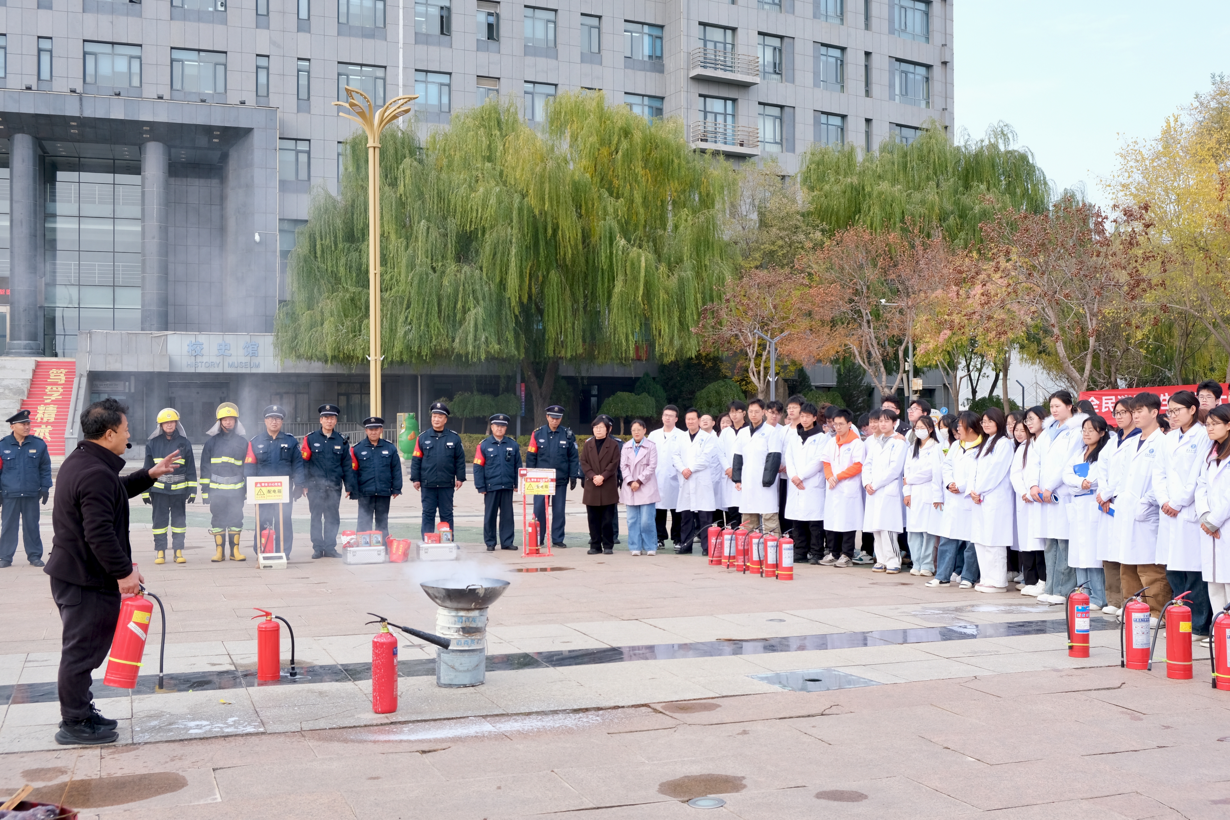 11月7日上午,学校组织师生代表在雁湖校区实验楼开展消防安全教育及疏散应急演练,以“真练实演”筑牢校园安全防线。