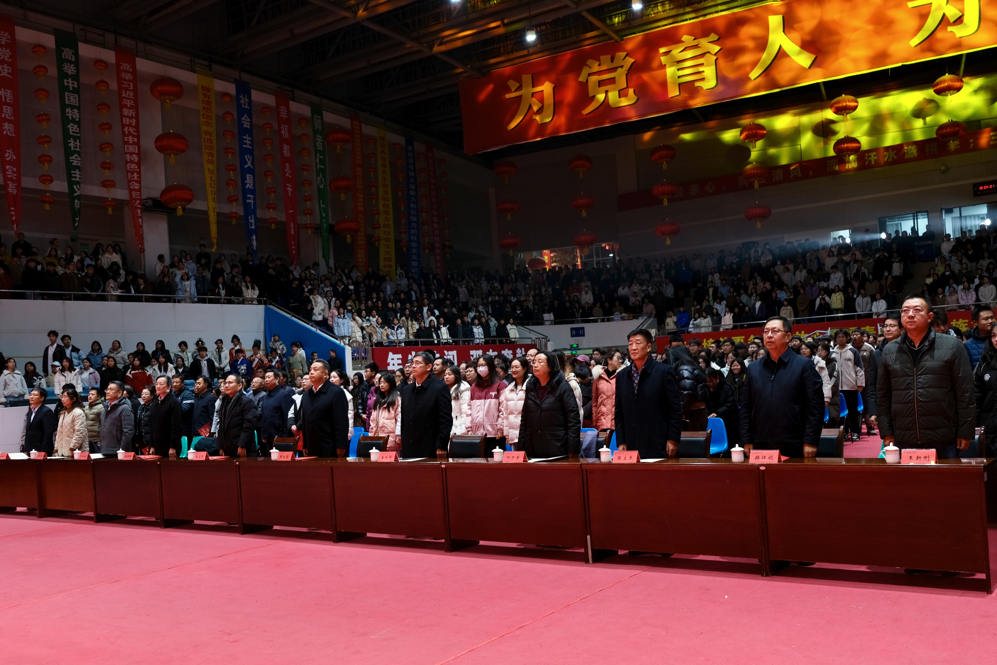 11月18日,学校在雁湖校区弘毅体育馆举办“盛世中华 美丽宁医”文艺汇演。学校党委书记张治荣,湖南医药学院党委书记张在其,学校党委副书记、校长姜怡邓,党委常委、副校级领导,湖南医药学院师生代表,各部门(单位)负责人、教职员工代表和2025级新生共同观看了演出。