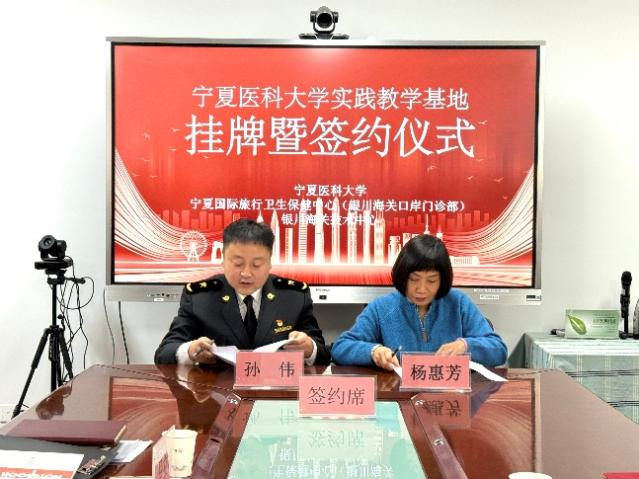 11月18日,学校与银川海关技术中心、宁夏国际旅行卫生保健中心(银川海关口岸门诊部)举行实践教学基地挂牌暨签约仪式。学校党委副书记韩蕃璠,银川海关副关长马立峰,银川海关班子成员,双方相关部门负责人及教师代表参加。