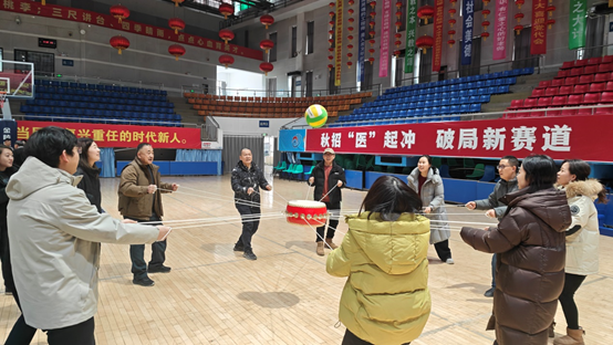 本次趣味活动由知识问答、同心鼓、动力火车、套圈、螃蟹赛跑和翻纸杯等六大板块组成,兼具知识性、趣味性、协作性和竞技性。知识问答环节巧妙融入医学特色与人文知识,既富趣味又具专业内涵。“同心鼓”环节,各小组齐心协力控制节奏,展现了高度默契;“动力火车”和“螃蟹赛跑”中,队员们步伐一致、配合紧密,赛场边加油声此起彼伏;“套圈”和“翻纸杯”项目则考验耐心与技巧,不少教职工身手敏捷、屡创佳绩。全体教职员工全情投入,在轻松愉快的氛围中强化了团队协作精神,也收获了运动的快乐。