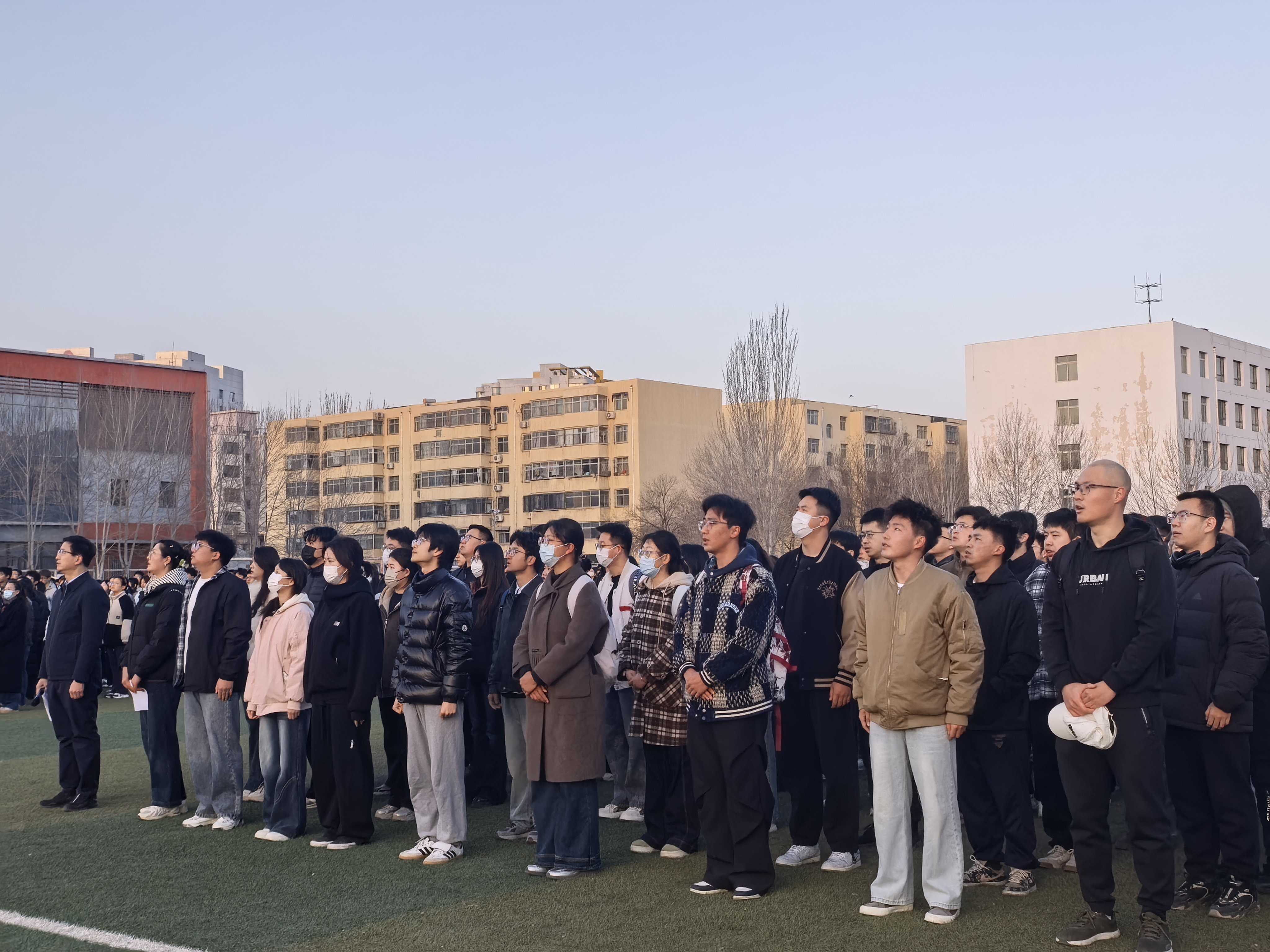 在升国旗仪式上,国旗护卫队的同学们身姿挺拔,口号响亮,迈着整齐的步伐,护送国旗步入广场中央。随着雄壮的国歌声响起,鲜艳的五星红旗冉冉升起,全场师生肃立同唱国歌,共抒爱国情怀。