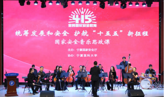 4月14日,学校联合宁夏国家安全厅在雁湖校区明德报告厅开展了一堂别开生面的“国家安全音乐思政课”。活动现场,隐蔽战线先辈阎又文之女阎颐兰与青年学子对话,深情回顾了无名英雄“白皮红心”、潜伏敌营的传奇人生,讲述了革命先辈的崇高精神和优秀品格,勉励青年学子将个人理想融入党和国家事业之中,书写新时代的忠诚与担当。国际级运动健将、中国著名马拉松运动员何杰送上视频寄语,结合成长历程以及在国外比赛、训练的经历,讲述了自己对国家安全的理解和认识,表达了“没有国家的安全稳定,就没有每个人安居乐业、追梦圆梦的‘跑道’”的心声。3名国家安全宣讲员从不同角度,讲述了在平凡岗位上守护国家安全的动人故事。交响乐团现场演奏《沉默的荣耀》《惊蛰无声》《绝密较量》等影视剧主题曲,华彩乐章与国安影视佳作碰撞出艺术共鸣与情感共振,为师生带来了全新沉浸式视听体验。