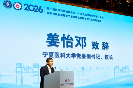 开幕式上,姜怡邓首先进行致辞,他讲到,2026年是“十五五”开局之年,也是落实科技、教育、人才一体化统筹发展战略的关键之年。本次论坛以“智启医研创新引领 聚力赋能科技兴医”为主题,紧扣国家战略、聚焦管理实践,是互学互鉴、共促提升的学术盛会。作为国家自然科学基金宁夏地区联络网组长单位,学校将以本次论坛为纽带,深化东西部协作与校际合作,汇聚全国科研管理智慧,以高水平科研创新赋能区域医学教育与医疗卫生事业高质量发展。张磊讲到,本次论坛为业内互通交流、凝聚共识、集聚动能搭建了优质平台。近年来,宁夏纵深推进东西部科技协作,聚焦医疗健康领域关键核心技术攻坚,加速科研成果落地转化,持续以科技创新引领医疗卫生事业提质升级,赋能成效突出。自治区科技厅将持续夯实政策保障、优化服务供给,深化跨领域、跨区域协同合作,凝聚多方合力,稳步推动全区医药健康科技创新工作高质量发展。