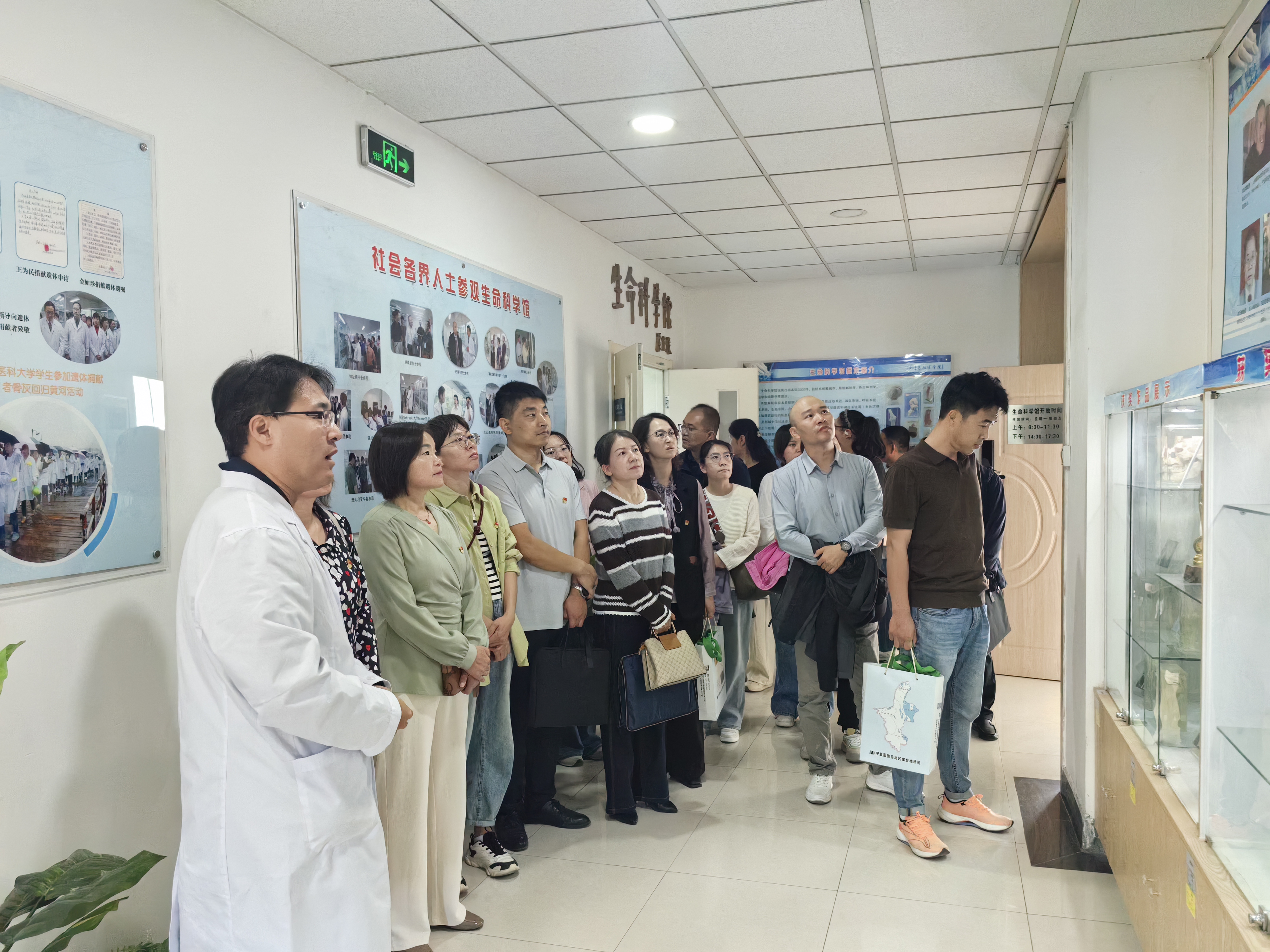 活动中,人体解剖学系党支部书记张义伟在生命科学馆、遗体捐献科普教育中心和解剖实验室,由浅入深,为自治区煤炭地质局第一、第二党支部党员上了一堂生动的解剖课,带领大家深入了解生命的意义和“敬佑生命、救死扶伤、甘于奉献、大爱无疆”的精神。