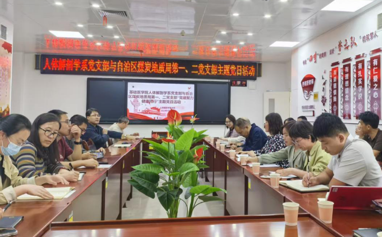 9月28日,基础医学院人体解剖学系党支部与宁夏回族自治区煤炭地质局第一、第二党支部联合开展“党建聚力 健康同行”主题党日。