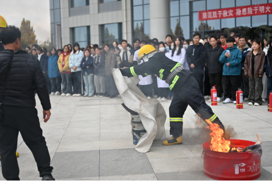 活动最后,银川市兴庆区消防救援新华站官兵结合校园高层防火,讲解了火灾报警、初期扑救、逃生避险知识,演示了干粉、水基、二氧化碳灭火器“提、拔、握、压”操作培训,师生分组参与模拟灭火,强化实操能力。
