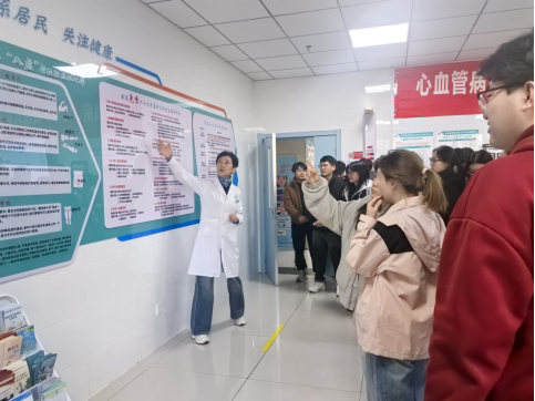 活动中,学生们依次参观了阅海万家F社区卫生服务中心、丰登镇乡镇卫生院和西新村卫生室,系统了解了基层医疗卫生机构的服务架构、运行模式及功能定位等,实地走访了全科门诊、公共卫生科、预防接种门诊、戒烟门诊、中医馆等核心区域。各机构相关科室负责人详细讲解了0~6岁儿童、孕产妇、老年人等重点人群健康管理,以及慢性病管理、家庭医生签约服务、信息化建设等内容,为学生们搭建起一座连接理论知识与一线实践的桥梁。在亲身观摩诊疗服务、参与健康档案整理等实践环节中,学生们直观感受到基层医疗卫生服务在保障居民健康、构建分级诊疗体系中的重要作用,对社区卫生服务管理工作有了更为立体的认知。