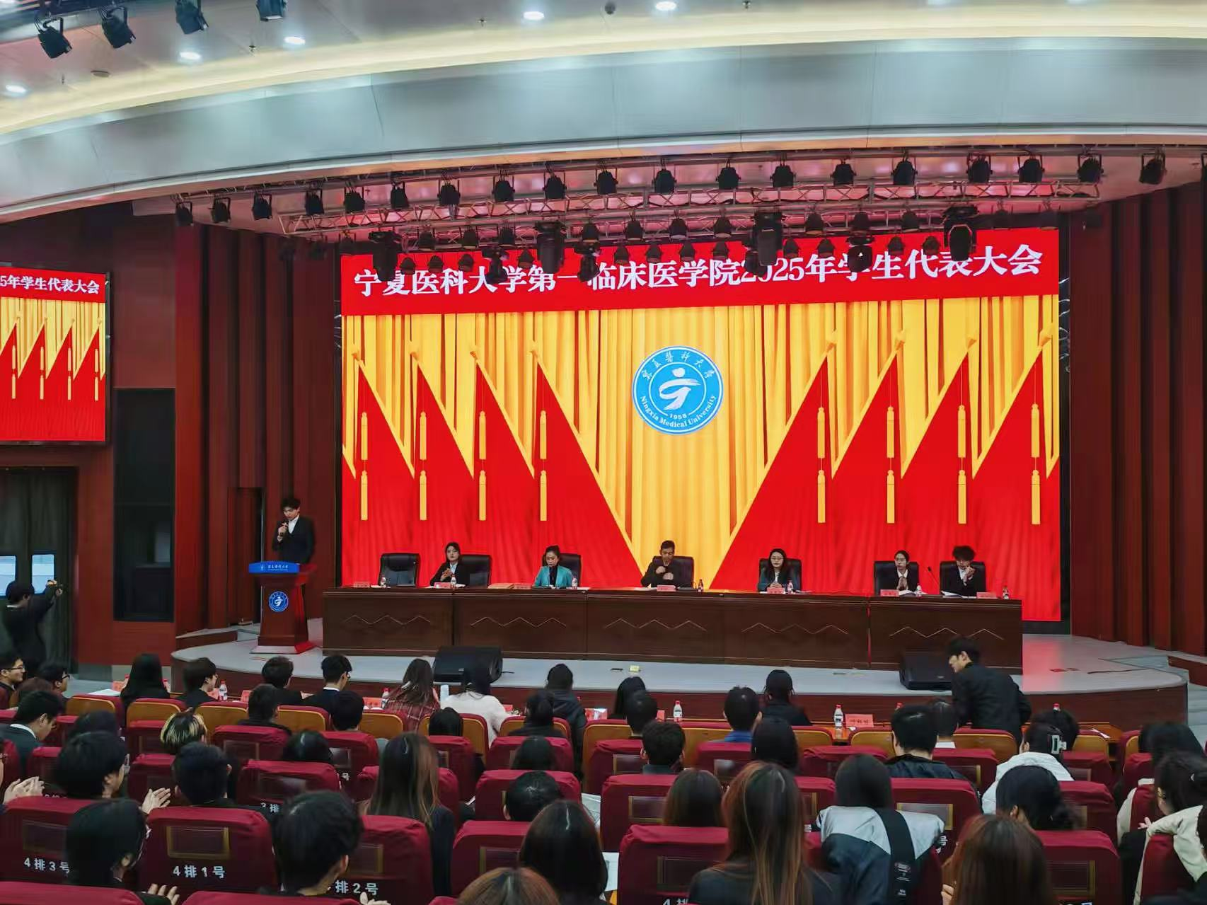 11月15日,学校第一临床医学院在雁湖校区知行楼明德学术报告厅召开2025年学生代表大会。学院专职组织员马宝立,辅导员老师,校院学生会代表和107名学生参加。