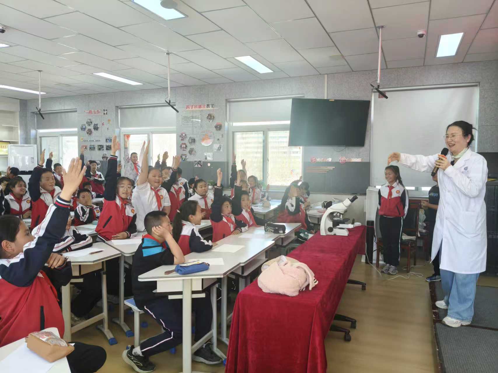 讲座中,实验室党支部书记俞晓丽以科普视频《人体奥秘》精彩片段为引,用生动的语言讲解了精卵结合与生命孕育的奇妙过程,将专业的生殖健康知识转化为通俗易懂的内容,引导同学们树立科学的健康观念,养成良好生活习惯。活动现场还特别设置了显微镜观察环节,同学们通过观察卵巢组织切片中的卵母细胞结构,直观感受生命的基本单元,在实践中激发对生命科学的探索兴趣。针对高年级女生,实验室老师还专门开展青春期生理卫生知识讲解,帮助她们科学认识身体变化,学会自我健康管理,从容迎接青春期。