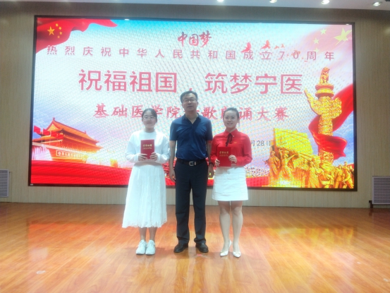 为庆祝中华人民共和国成立70周年,深入开展普通话推广宣传活动,引导青年学生弘扬爱国之情报国之志,做大写中国人,普通话讲标准。9月28日下午,基础医学院在雁湖校区学术报告厅举办“祝福祖国,筑梦宁医”普通话朗诵比赛。学生处处长周永伟、宣传部宣传科科长朱燕、学生处王颖丽、基础医学院党委书记周文韬、副院长侯绍章、辅导员杨兴莲及王妮娜老师应邀参加活动并担任本次比赛的评委,学院本科生、研究生270余名同学参加此次比赛。