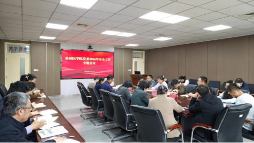 4月3日,基础医学院在厚生楼书香学苑召开安全工作专题会议。会议由学院党委书记张艳丽主持,领导班子成员、党支部书记、学系(中心)主任及行政各办负责人参加会议。
