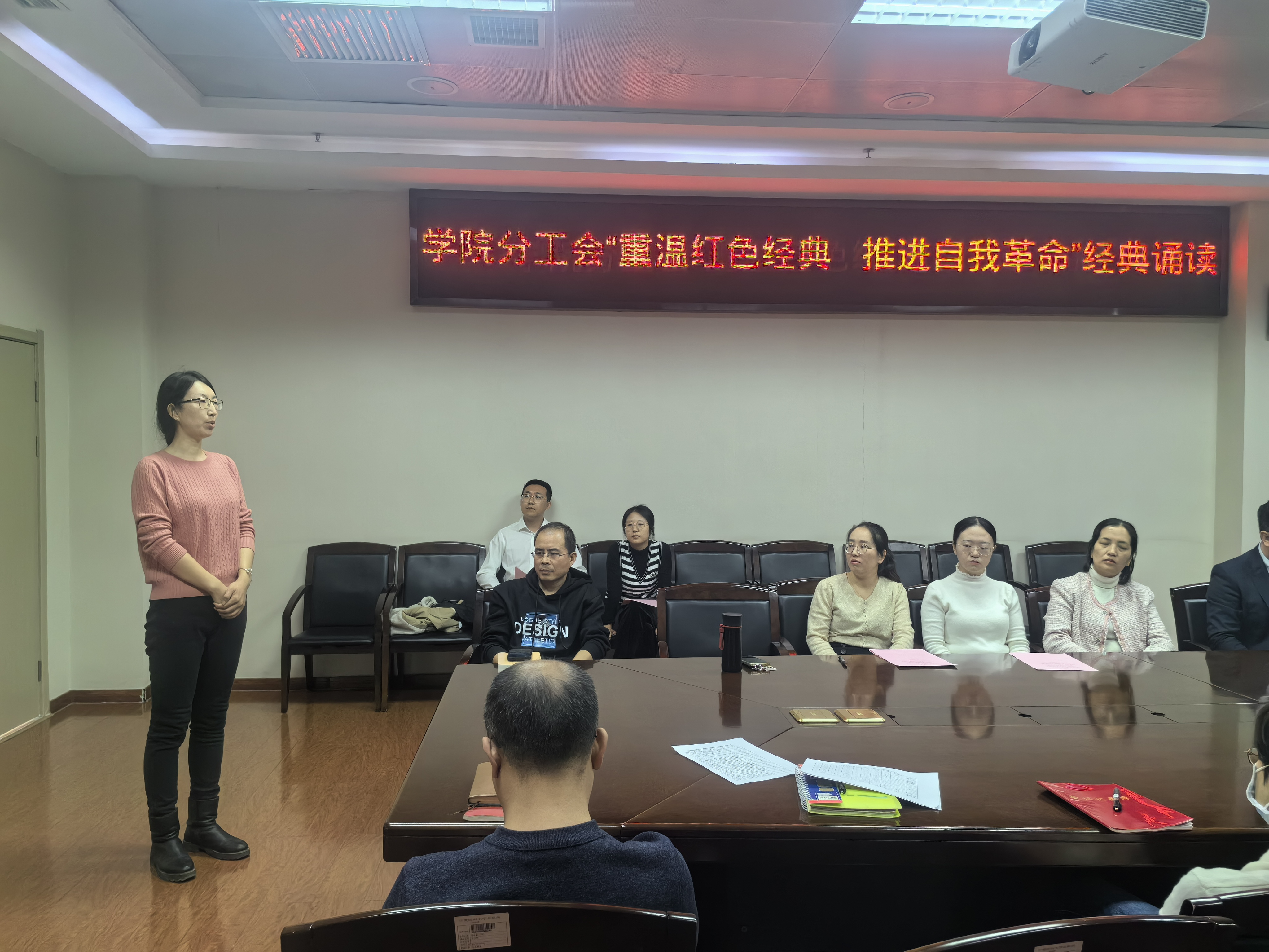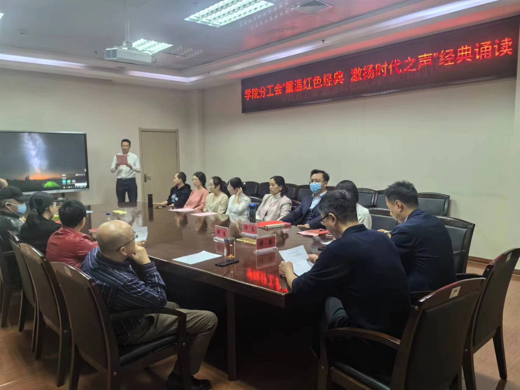 为学习宣传贯彻全国两会精神,传承弘扬中华优秀语言文学,推进文化自信自强,3月22日上午学院分工会联合教工党支部举办了以“重温红色经典 激扬时代之声”为主题的经典诵读活动。本次经典诵读集独诵、对诵、集体朗诵、配乐配景朗诵等多种形式于一体,吸引了学院老师们的积极响应和广泛参与。学院领导黄永清、贾立勤、文友民作为评委参加了诵读比赛。