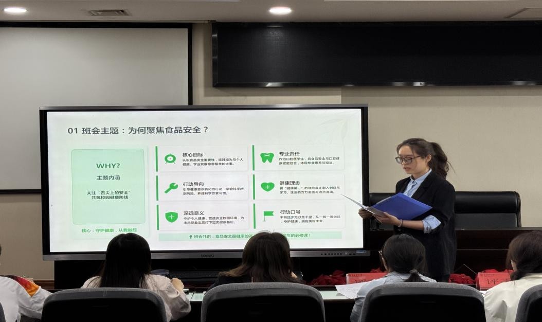 本次决赛从主题契合度、活动创新性、育人实效性、答辩表现力等维度进行综合评分。决赛现场,各参赛班级班长依次登台,围绕安全教育、心理健康、青春励志、文明素养等贴近校园生活的核心主题,通过PPT展示、案例分享、互动再现等多元形式,全面呈现了班会的筹备思路、实施过程、实际成效及改进方向。各班展示内容充实具体,案例选取兼具典型性与现实意义,互动环节设计新颖,充分展现了口腔学子团结协作、积极向上的精神风貌,赢得了评委与现场观众的一致好评。
