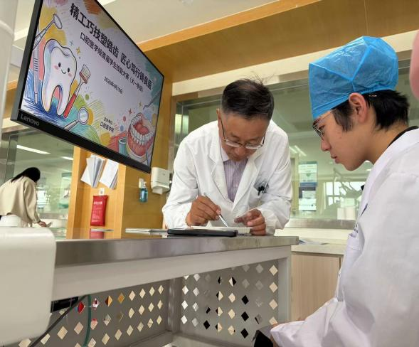 为夯实口腔医学专业学子的专业基本功,锤炼手部精细操作能力,厚植精益求精的工匠精神,4月16日上午,口腔医学院“思精烛微修灵心慧齿·学博通途铸口腔良医”学风建设“一院一品”创建启动仪式在实验教学中心正式拉开帷幕。与此同时,“精工巧技塑皓齿·匠心笃行筑良医”首届学生技能大赛同步启动,首场比赛——口腔医学本科一年级学生镊子夹豆比赛顺利开锣。学院党委书记贾立勤、院长黄永清、副书记王云亲临现场,观摩指导赛事开展。