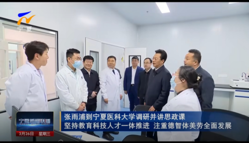 3月26日,自治区党委副书记、自治区主席张雨浦到思政教育联系点宁夏医科大学调研,宣讲全国两会精神,并为广大师生讲授思政课,征求对政府工作的意见建议,强调要深入学习贯彻习近平总书记关于教育的重要论述和全国教育大会精神,坚持教育科技人才一体推进,注重德智体美劳全面发展,为服务国家战略和宁夏发展培养更多优秀人才。