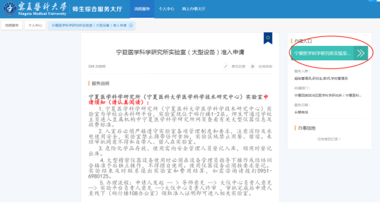 “宁夏医学科学研究所实验室(大型设备)准入申请”校内用户线上办理操作指南