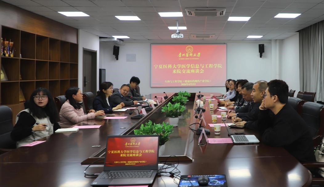 2026年4月2日,医学信息与工程学院副院长孙利宏率队赴贵州医科大学生物与工程学院,就医工交叉人才培养工作开展专题调研交流,贵州医科大学副校长曾柱、生物与工程学院党委书记岳萍、副院长叶远浓及各系部负责人参加。