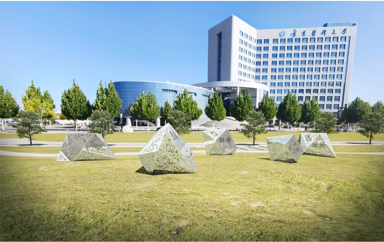 会上,1995届校友集体捐赠的校园景观小品“时光砺钻・初心永恒”正式发布,该小品通过五枚钻石造型来代表1995届临床医学、预防医学和中医学五个毕业班级,象征着校友在母校沃土中夯实学识根基,也寓意着大家历经社会磨砺仍坚守本心、闪耀如初。这是95届校友回馈母校培育之恩的真挚献礼,愿它成为师生日常驻足的“科学窗口”,每当路过,能想起细胞里跳动的生命密码,能感知大自然中万物相依的温柔,更能铭记人类用智慧守护生命的执着。