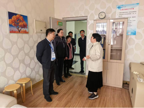 期间,章成斌一行还实地考察了学校大学生心理健康教育与咨询服务中心,了解了中心的场地建设、师资配置、咨询服务流程及心理危机干预机制。