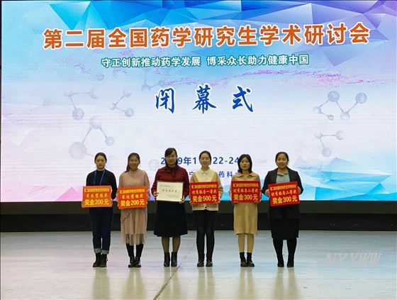 在学校研究生院的支持和指导下,药学院组织14名硕士研究生参会,其中6位研究生分别以口头报告和壁报的形式展示了科研成果,取得了优秀报告一等奖1项,二等奖2项,最佳壁报奖2项,学校荣获最佳组织奖。