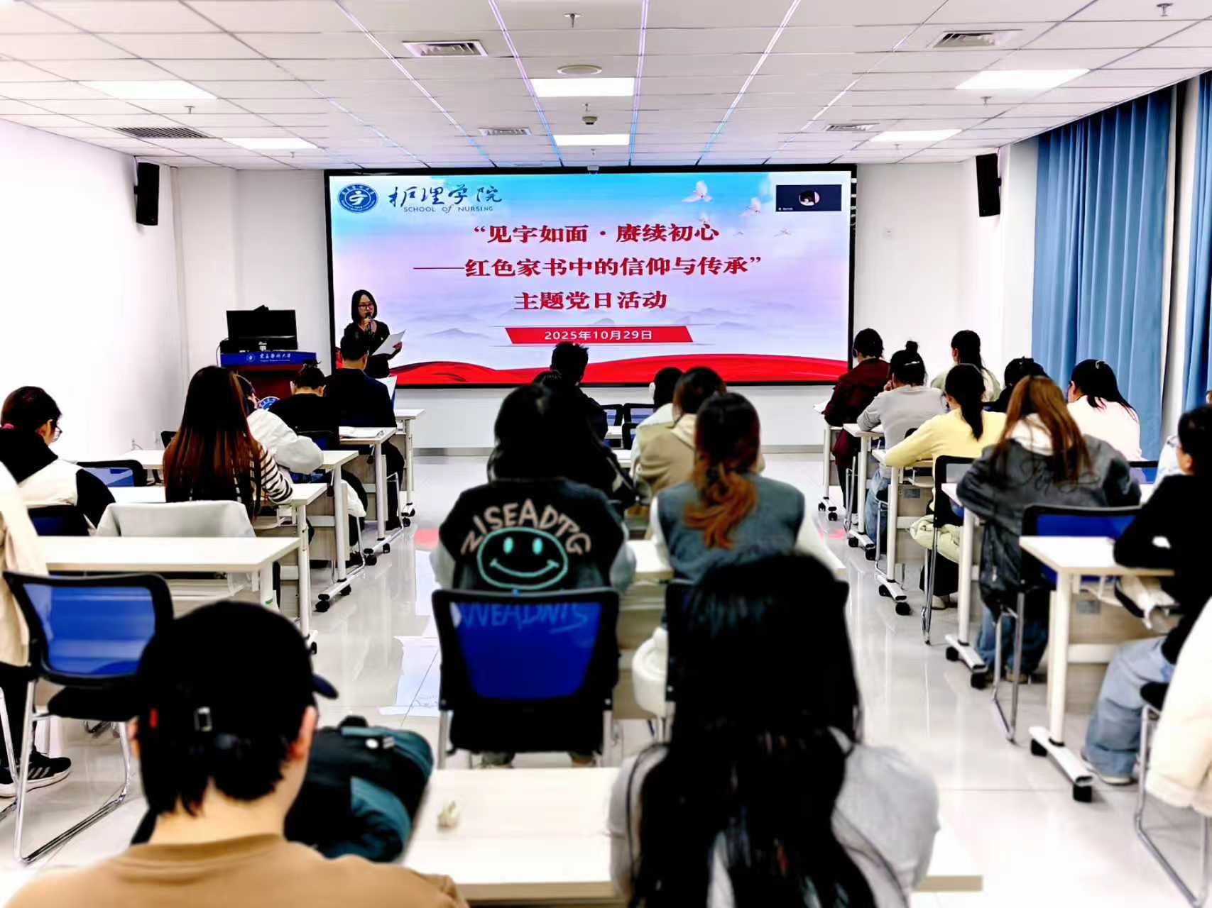 10月29日,护理学院本专科生党支部联合2024级本科护理5班团支部开展“见字如面·赓续初心——红色家书中的信仰与传承”主题党(团)日。