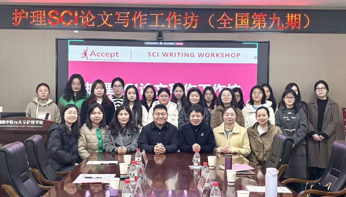 2025年12月14日,护理SCI论文写作工作坊(全国第九期)在湖南中医药大学护理学院隆重开班。本期工作坊由宁夏医科大学护理学院与中南大学湘雅护理学院的教师联合授课,旨在系统提升护理教师和研究生的SCI论文写作能力与科研水平。开班仪式由湖南中医药大学护理学院副院长秦莉花主持。