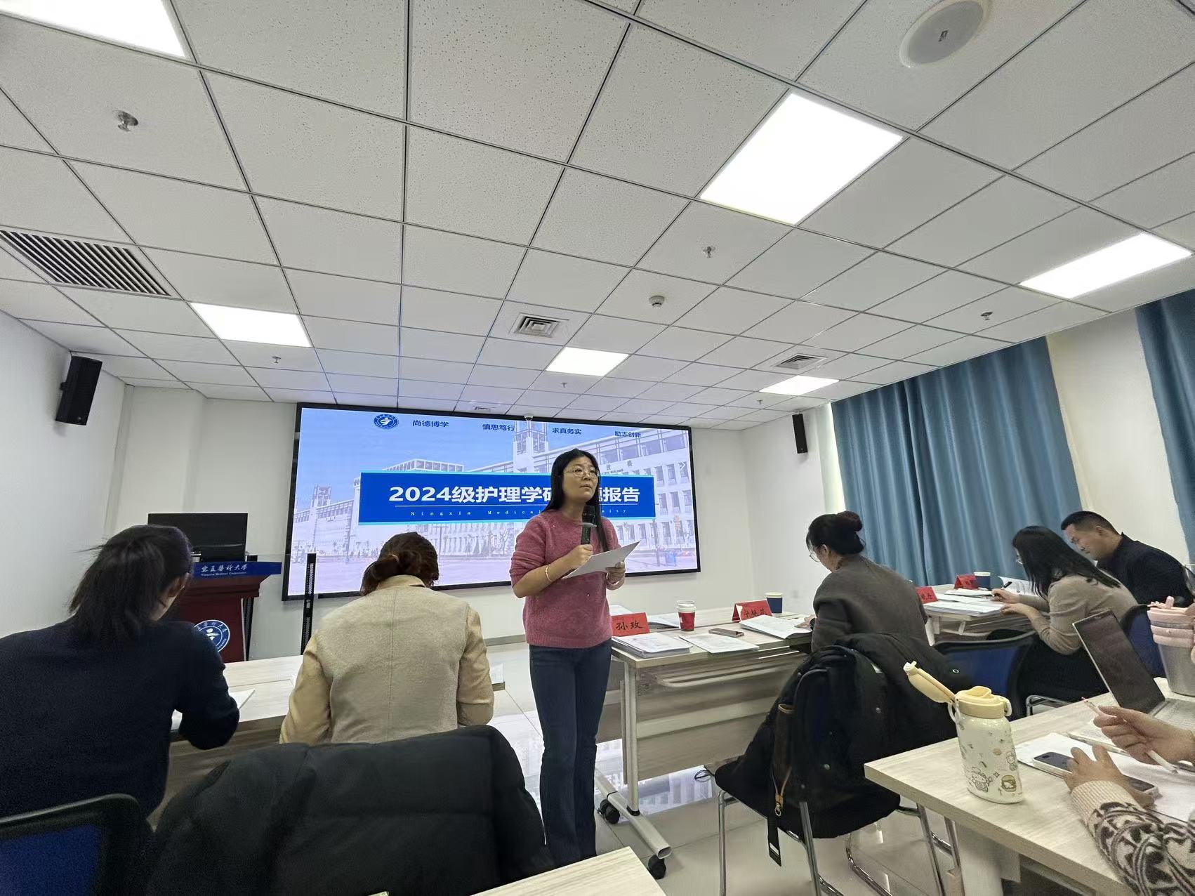 2025 年 11 月 18 日至 19 日,学院在知行楼1111室开展 2024 级护理学学术型研究生开题汇报。本次汇报特邀中南大学湘雅护理学院王红红教授、孙玫教授,宁夏医科大学公共卫生学院杨甲飞教授、李小霞副教授,及我院老师担任评审专家,学院副院长朱亚飞主持本次汇报。