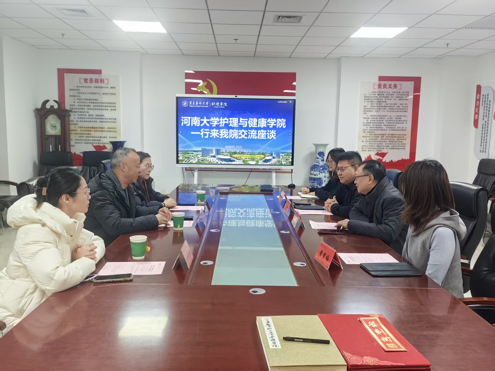 2026年1月9日,河南大学护理与健康学院党委书记谢纳泽、青年教师韩梦丹和辛菊花一行三人来院交流座谈。学校学术副校长唐四元教授出席会议,学院教学管理办公室主任、对外合作交流办公室主任参加座谈会。会议由学院院长刘民辉主持。