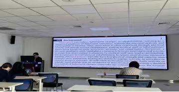 第二位汇报者是2024学术型研究生郑英杰,她汇报的文章发表在BMC Nursing期刊,影响因子为3.9,题为“Effects of a family-focused dyadic psychoeducational intervention for stroke survivors and their family caregivers: a pilot study 。该研究聚焦于脑卒中患者及其主要家庭照护者的家庭共同体干预模式,核心目的是评估以家庭为中心的双人心理教育干预(Family-Focused Dyadic Psychoeducational Intervention, FDPEI)在卒中照护中的可行性、可接受性及初步效果,以促进患者康复并减轻家庭照护负担。研究采用单盲、平行对照的随机对照试验设计,共招募40对卒中幸存者与其主要家庭照护者。干预内容包括三次住院期间的面对面心理教育课程和四周出院后的电话随访辅导,干预基于“双重ABC-X模型”构建,从信息提供、心理支持及行为情绪调节三方面强化家庭资源与应对能力。结果显示,该干预具有良好的可行性(招募率76.9%,完成率75%)与可接受性。参与者普遍认为干预内容实用,能够增强自我照护和沟通能力。干预组患者在记忆与思维功能、活动能力方面改善显著,照护者的照护负担明显下降,照护胜任感显著提高,效应量较大,而总体功能及部分心理指标虽呈改善趋势但没有统计学意义。该研究为中国文化背景下探索卒中家庭共同照护干预提供了实证依据,明确了基于家庭单元的心理教育模式在促进功能恢复与减轻照护压力方面的潜力。研究结果为今后开展更大样本、长期随访的干预研究提供了方法学参考,并为临床卒中康复护理及家庭健康教育提供了可推广的实践框架。