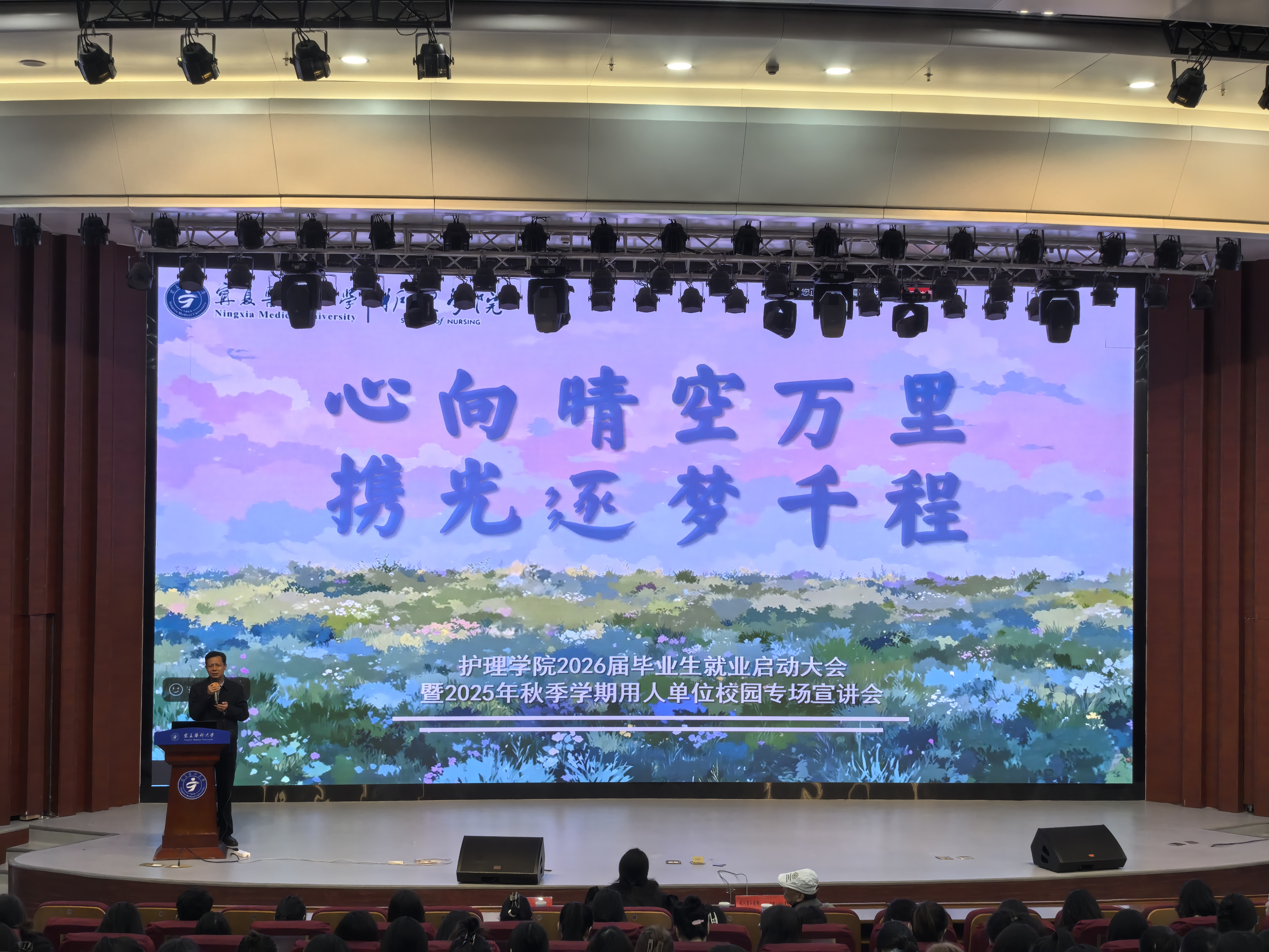 会上,银川厚仁医院、石嘴山佑仁医院、上海远大心胸医院、宁夏源众人力资源服务有限公司围绕单位发展历程、规模性质与运营现状、招聘细则及薪资待遇等进行了专场宣讲。与此同时,学院同步开启直播带岗服务,为更多护理毕业生精准传递优质就业岗位信息,确保就业机会不缺位。2025级专升本班杨玮同学结合从校园奔赴军营的经历,细致解读征兵政策,倡议同学们以青春热血为笔,以护理专长为墨,投身绿色军营、筑梦无悔青春。
