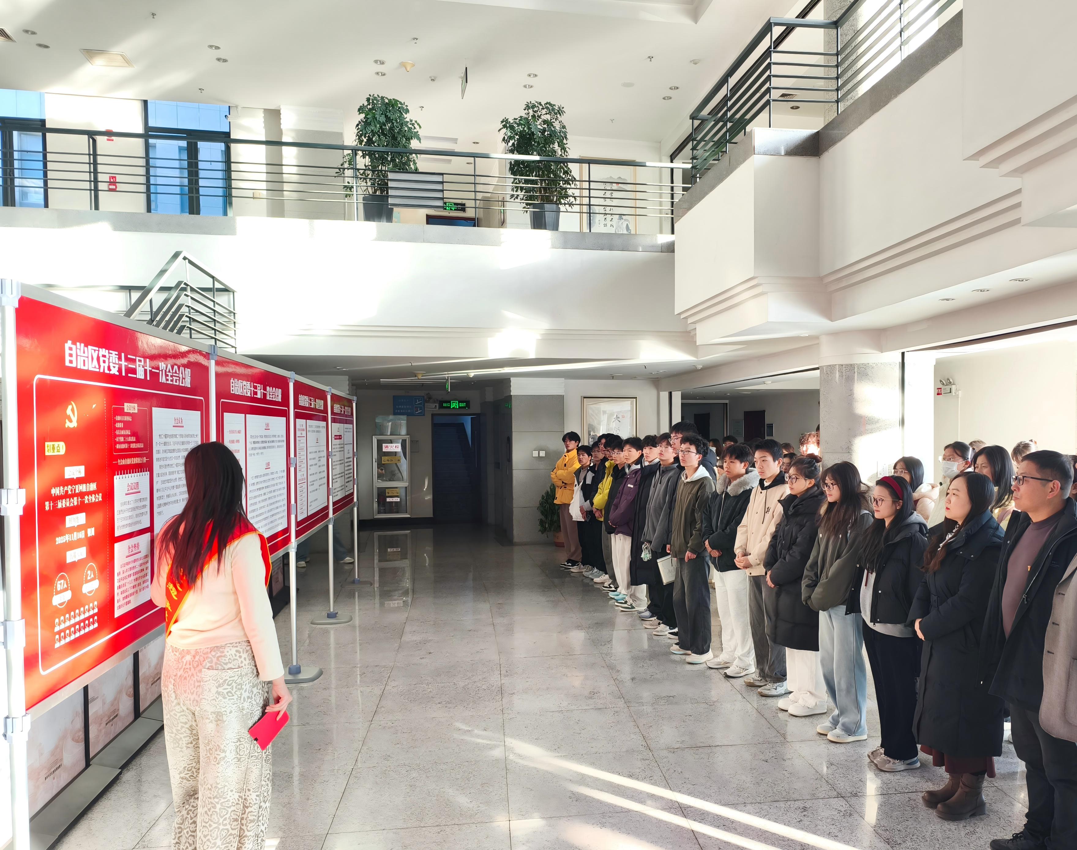 活动现场,宣讲员结合展板图文与典型案例,系统解读党的二十届四中全会及自治区党委十三届十一次全会的重要论述、战略部署与目标任务。讲解深入浅出,兼顾理论高度与青年学习生活实际,引发在场学生积极思考和热烈讨论。