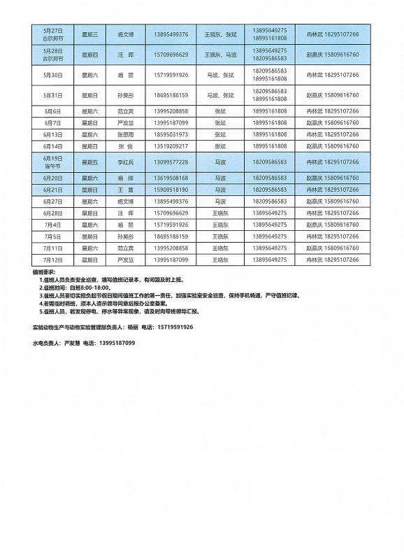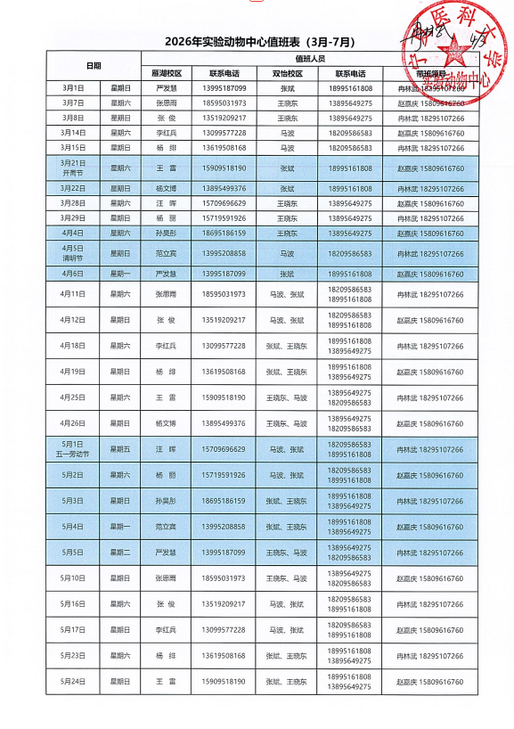 2026年实验动物中心值班表(3月-7月)-实验动物中心