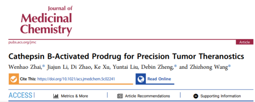 2025年10月3日,我校翟文豪教授、王志忠教授与中国人民解放军总医院郑德彬助理研究员合作,在Journal of Medicinal Chemistry期刊(IF=6.8,中科院1区,Top文章)发表了题为Cathepsin B-Activated Prodrug for Precision Tumor Theranostics的研究论文,构建了一种基于cRGD靶向与CTSB激活的双靶点智能诊疗前药NM-001。该体系运用分子内自消除化学原理,成功实现了氮芥药物的增效减毒,并能够实时示踪其递送与释放过程。