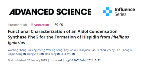近期,宁夏医科大学吴秀丽教授团队在Advanced Science期刊(IF=14.3,中科院1区Top)发表了题为Functional Characterization of an Aldol Condensation Synthase PheG for the Formation of Hispidin from Phellinus Igniarius的研究论文,揭示了Phellinus igniarius次级代谢产生hispidin的生物合成途径,并且获得一种新颖的羟醛缩合酶PheG。